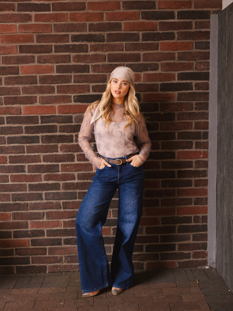 This lace long-sleeve top offers a relaxed, roomy fit with high-stretch fabric that moves with you. Featuring a classic crew neck and an unlined design, it's perfect for layering or pairing with your favorite pieces for a comfortable, stylish look.