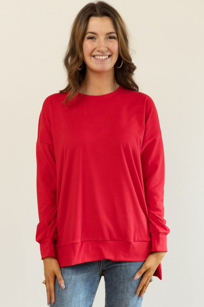 Featuring a relaxed fit and some stretch, this crewneck sweatshirt ensures a comfortable, flattering wear. The unlined design adds to its lightweight feel, while the crew neck provides a classic touch. The split hem enhances the silhouette with a modern detail, making it easy to pair with various bottoms.
