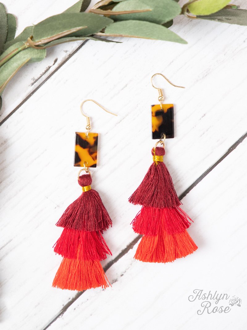 Beyond Precision Tassel Earrings with Leopard Marble. Red