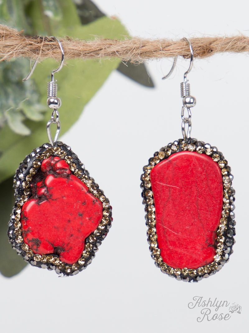 Ready to Rock Red Stone Drop Earrings with Honey Crystal Accents, Silver