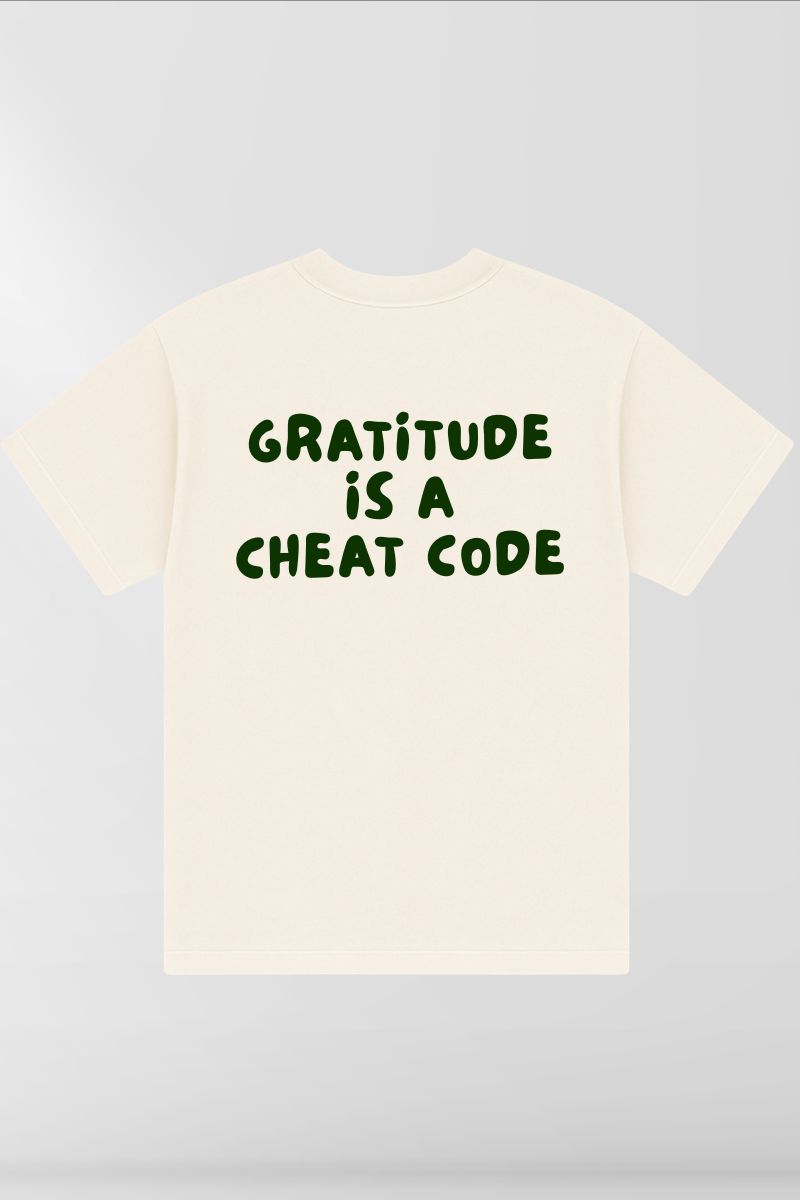 Level up your mindset with the tee that reminds you the real game-changer isn't caffeine or WiFi—it's gratitude. The "Gratitude is a Cheat Code" box tee is cut from creamy 100% preshrunk cotton with bold, playful text that's lowkey deep.