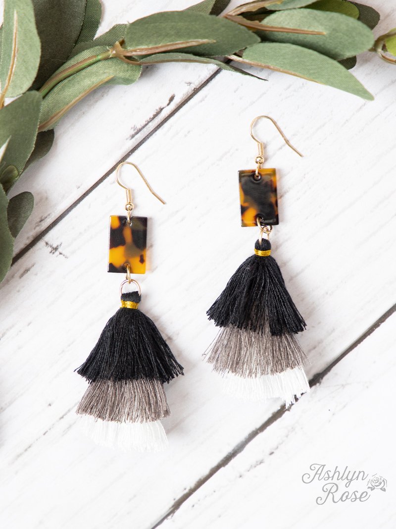 Beyond Precision Tassel Earrings with Leopard Marble. Black