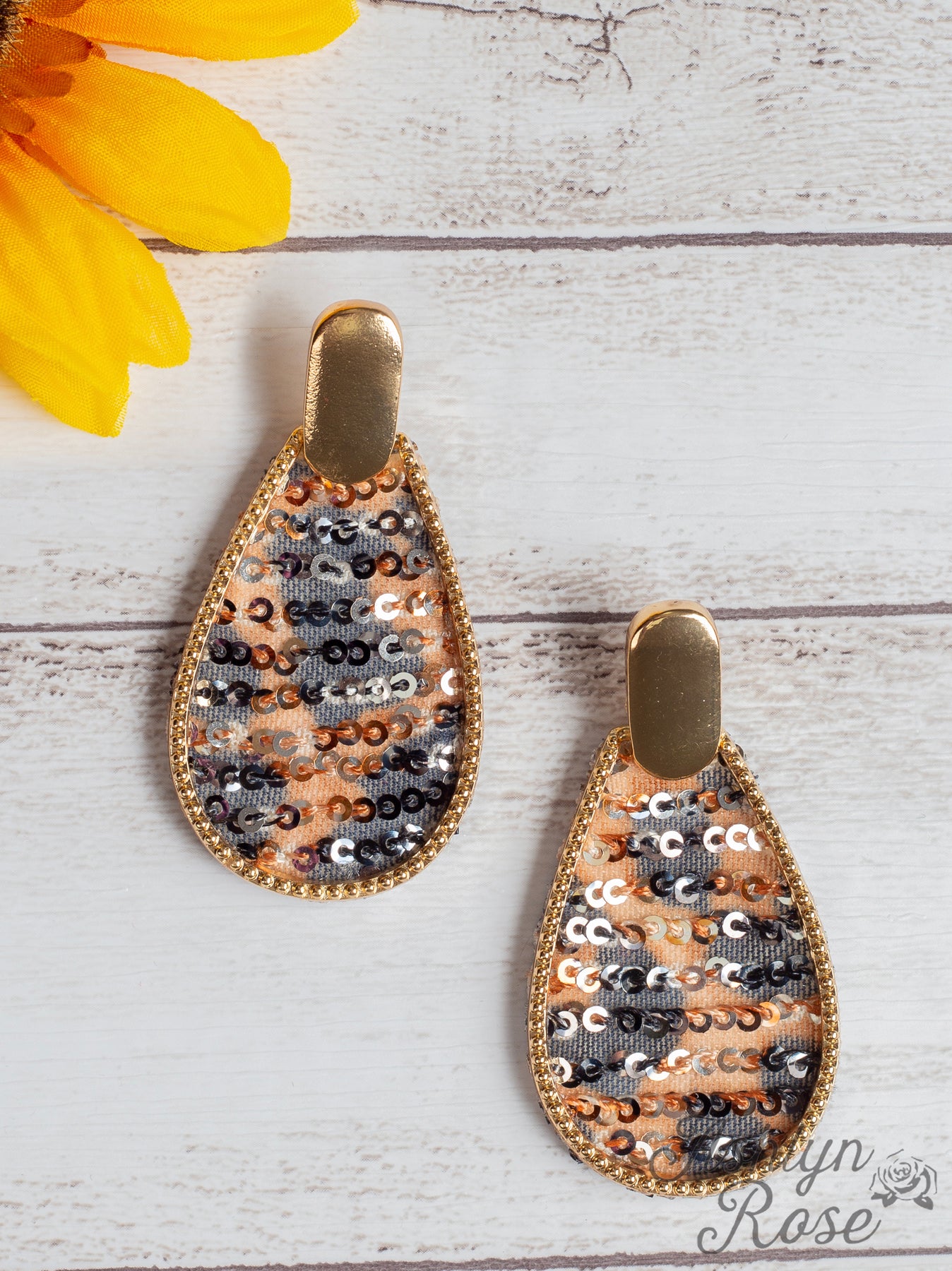 Like a Lady Teardrop Earrings with Gold Stud, Sequin Grey