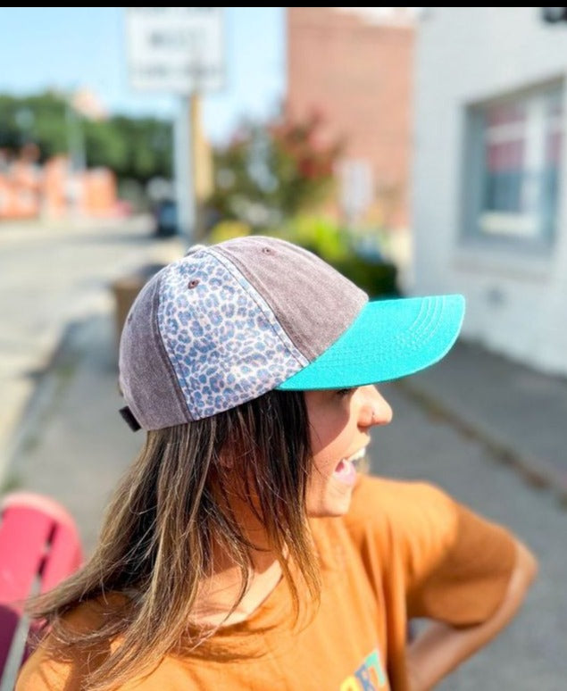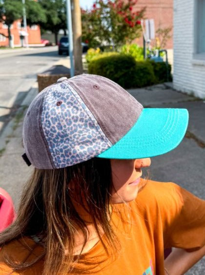 The back of the hat includes an adjustable magic closure for a perfect fit. The leopard print is a highlight but only covers a part of the hat, adding a trendy touch without overwhelming the entire design.