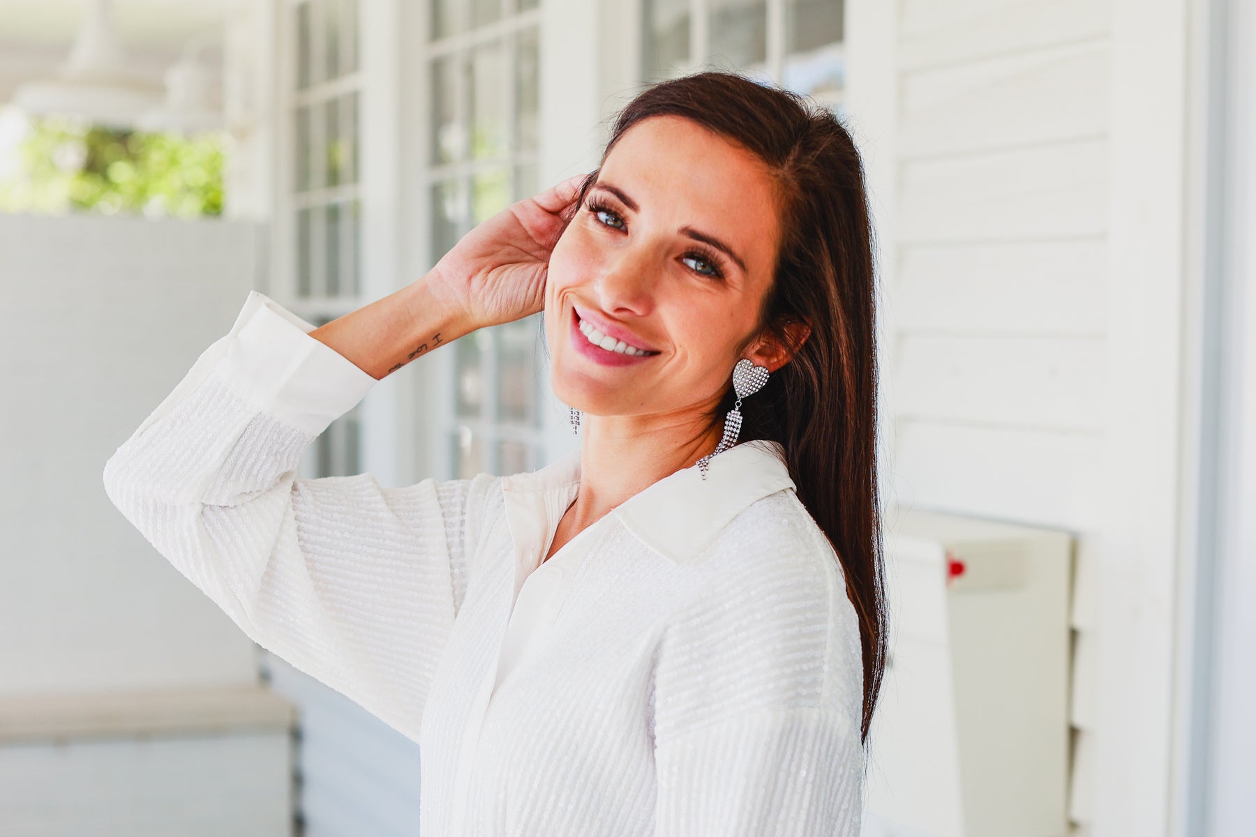 Chained To Your Love Heart Earring With Rhinestone Fringe in Silver