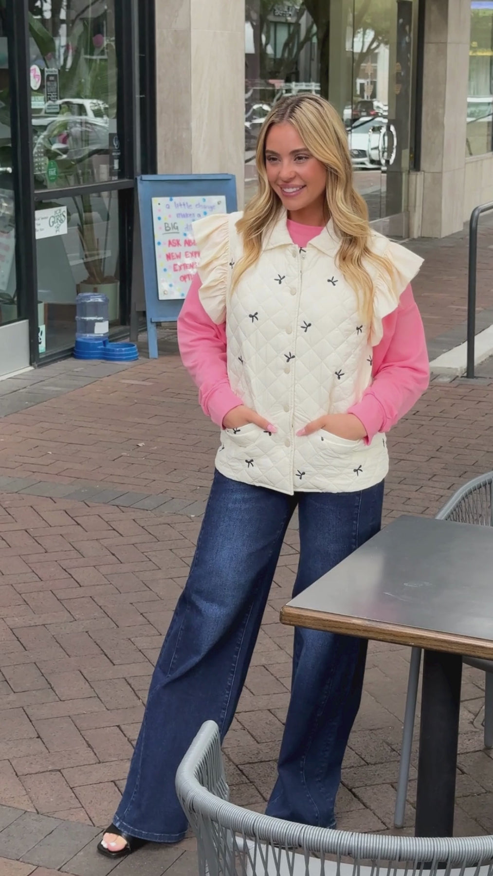 Quilted Puffer Vest with Bows, Ivory