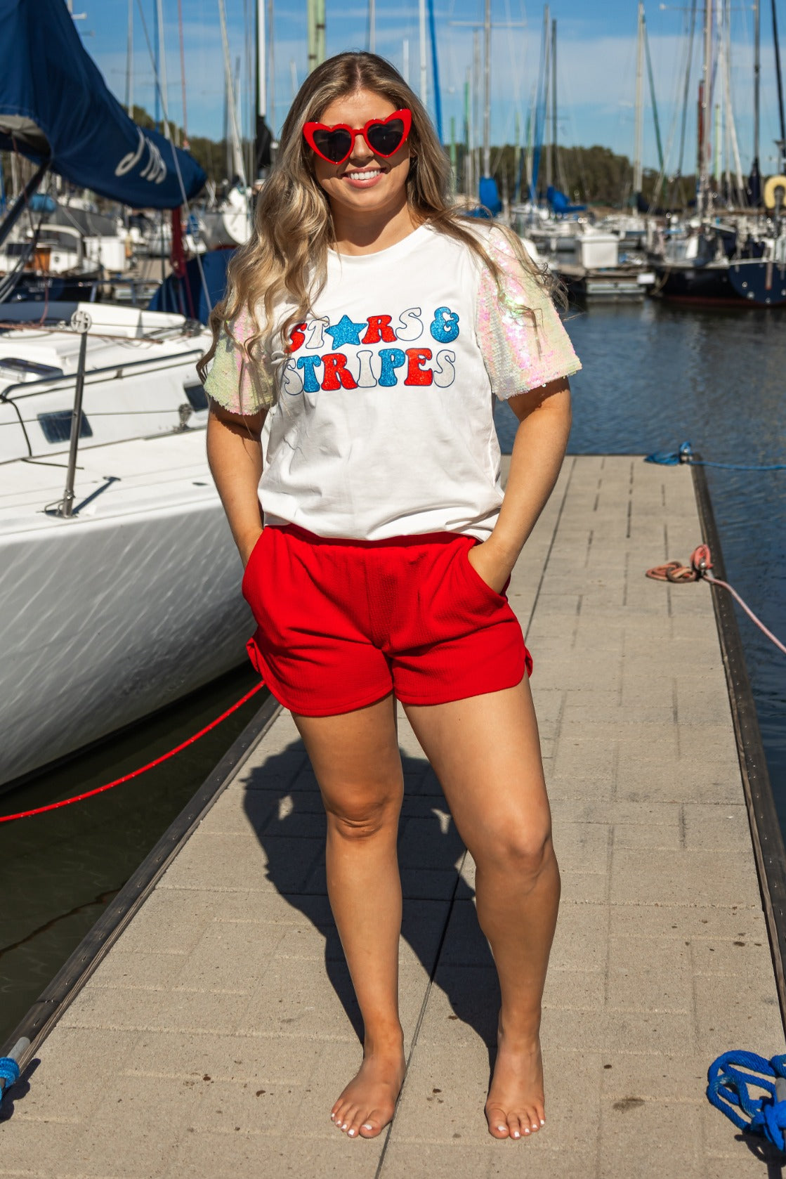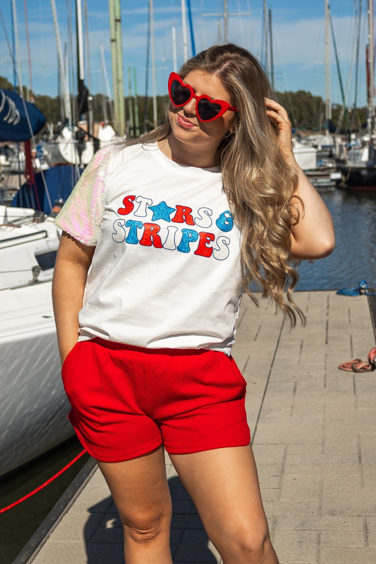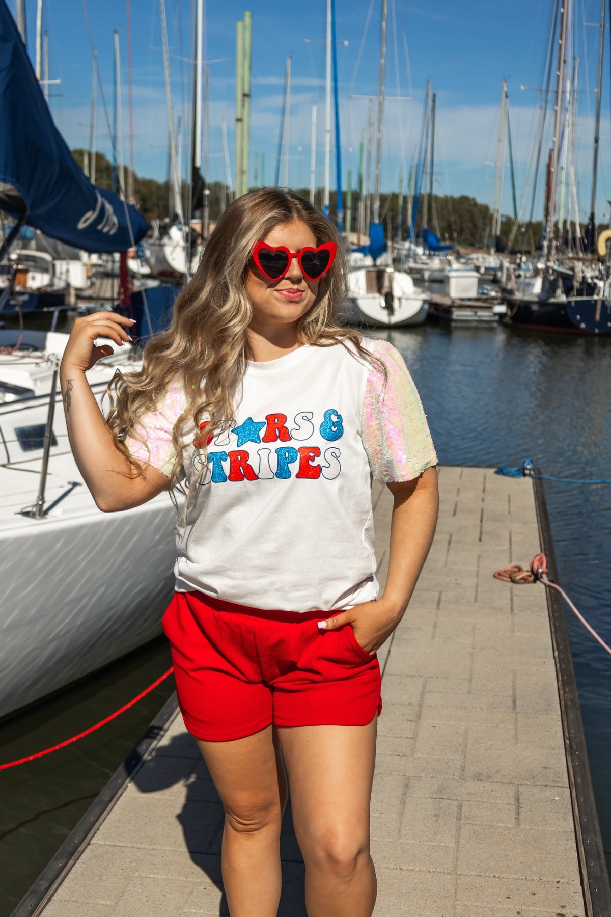 Its oversized fit provides comfort without compromising style, while the high-stretch fabric flatters your figure effortlessly. Designed with a classic crew neck, this piece stands out with sequin-adorned sleeves, fully lined to prevent any discomfort on the skin.