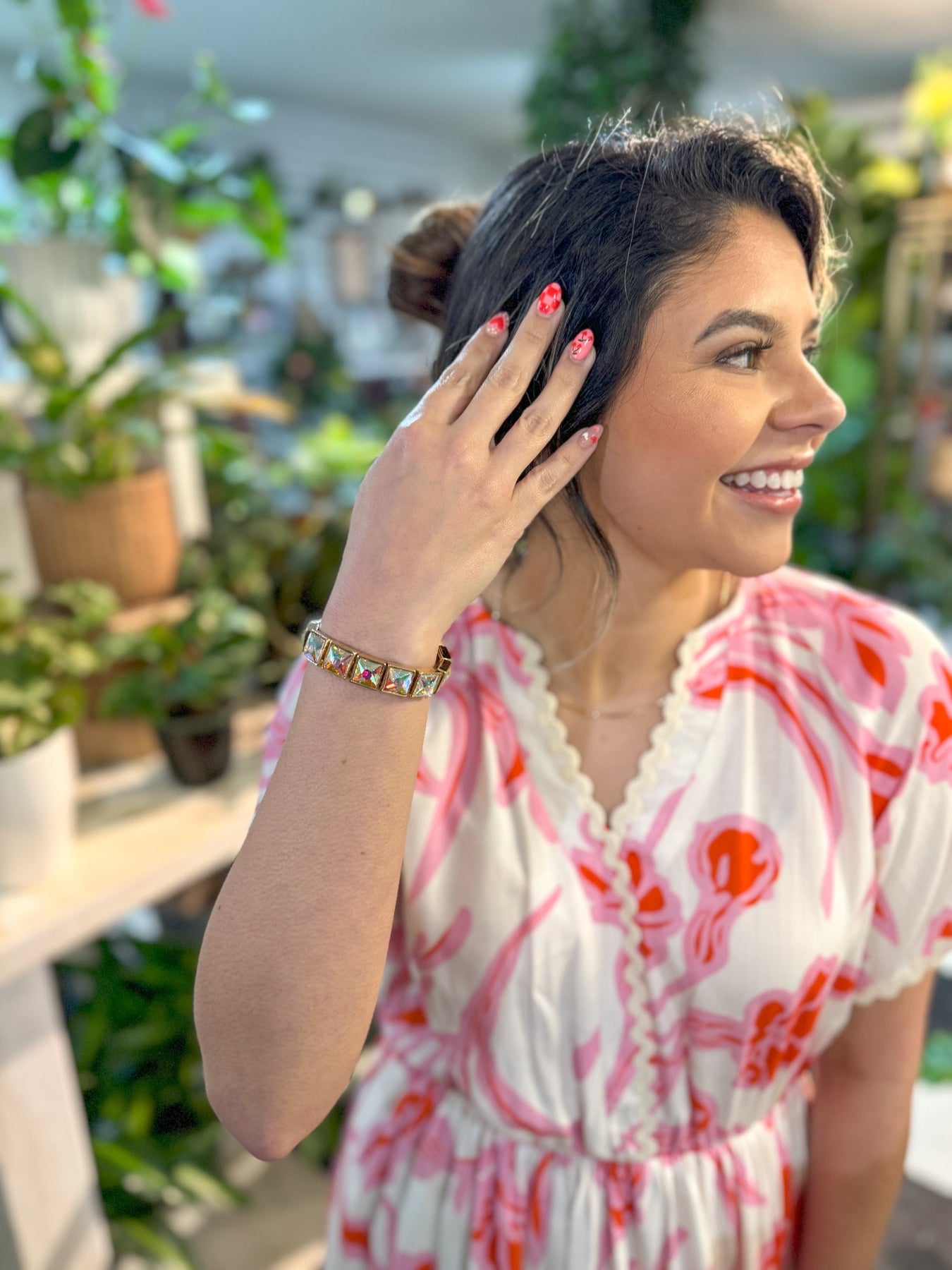 No outfit is complete without the perfect accessory! Our Cutest Crush Stretch Bracelet features a trendy elastic design with square gemstones that add a classic touch. From formal to casual occasions, this bracelet will be the cutest addition to your ensemble!